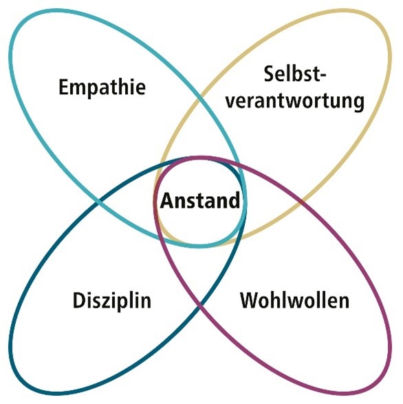 Mit dem Bewusstsein, Verantwortung über das eigene Handeln und deren Konsequenzen zu tragen, wird das eigene Ethikverständnis aktiviert. Das heisst vor allem, dass Konsequenz für das eigene Selbstwertgefühl und die Umgebung ein nicht zu unterschätzender Selbstanspruch einhergeht. Damit verbunden ist auch der Umgang mit Scham bei Versagen oder bestätigtes Selbstvertrauen bei Erfolg. Werden dabei die Elemente des Anstandes nicht berücksichtigt, wird Selbstverantwortung mit Narzissmus gleichgesetzt (s. Abbildung).